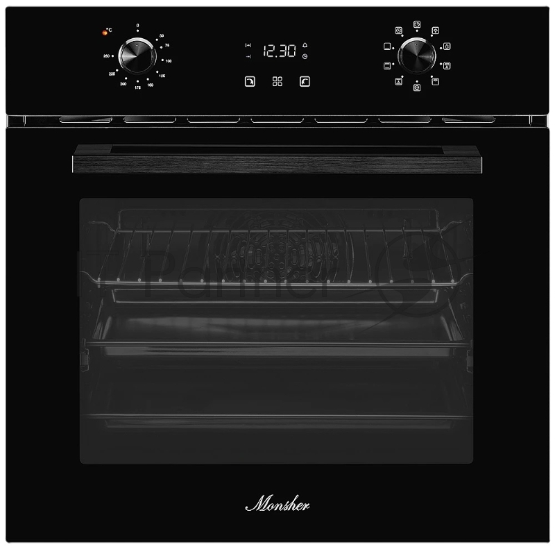 Встраиваемый электрический духовой шкаф MONSHER MOE 6092 Noir, 9 режимов: Традиционный нагрев, Макси-Гриль, Макси-Гриль с конвекцией, Нижний нагрев, Разморозка, Традиционный нагрев с конвекцией, Режим подсветка, Конвекция, Режим пицца, утапливаемые п