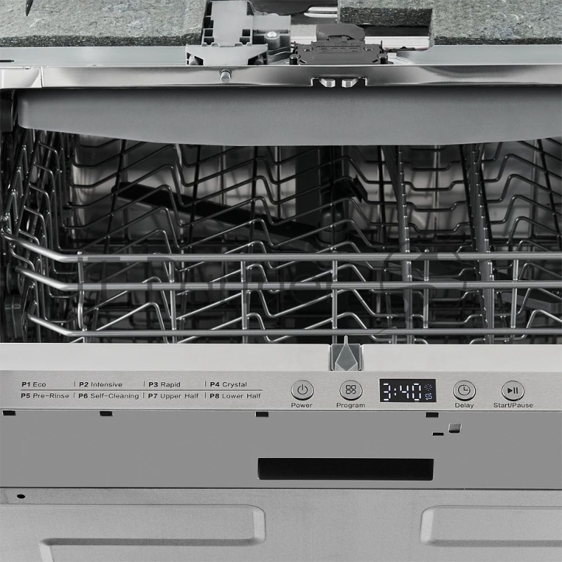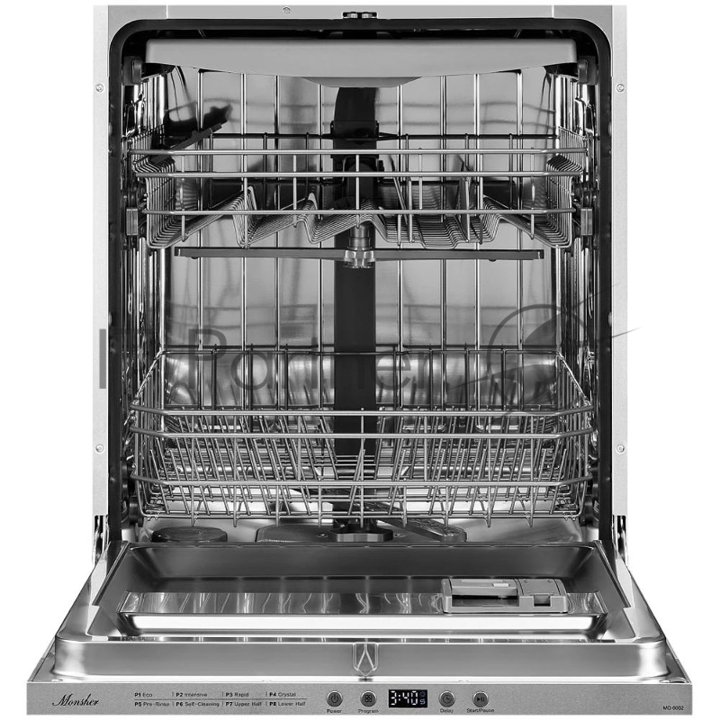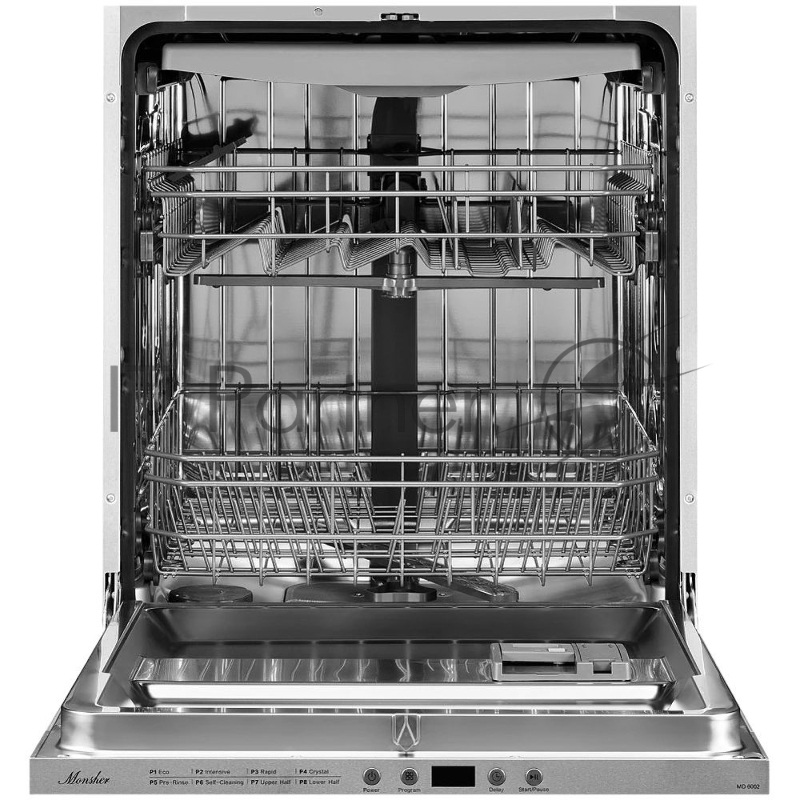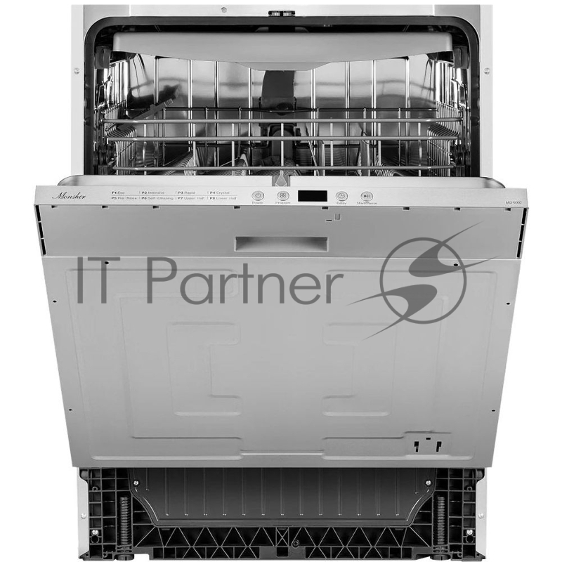 Встраиваемая посудомоечная машина MONSHER MD 6002, High-Tech, 60 см, 14 комплектов, 8 программ, 3 корзины, белый LED дисплей, 1 разбрызгиватель, кнопочное управление, автоматическое открытие дверцы, полная защита от протечек, самодиагностика неисправ