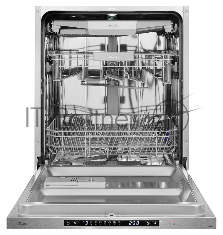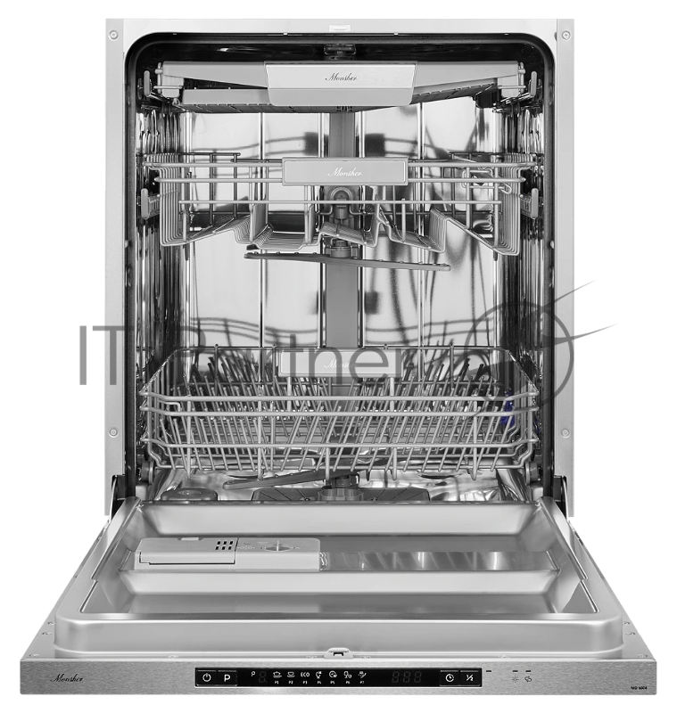 Встраиваемая посудомоечная машина MONSHER MD 6004, ширина 60 см, Количество корзин: 3, 14 комплектов посуды, Электронное управление, Цифровой дисплей, Отсрочка старта 1-24 часов, Луч на полу, Внутреннее освещение, программ: Интенсивная, Нормальная, Е