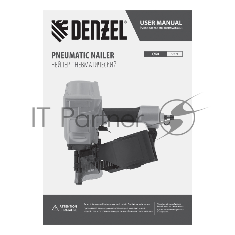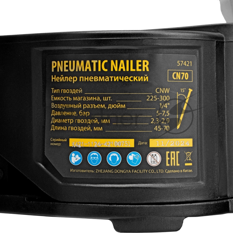 Нейлер пневматический CN70 для гвоздей CNW от 45 до 70 мм// Denzel
