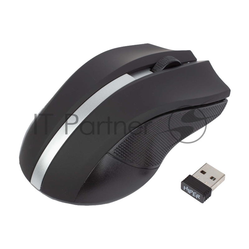 Мышь беспроводная HIPER HOMW-072 /1000 dpi/оптический/3 кнопки/Soft-touch покрытие/USB-приемник/2,4 ГГц/батарея 2хААА/черный и серебристый (HOMW-072)