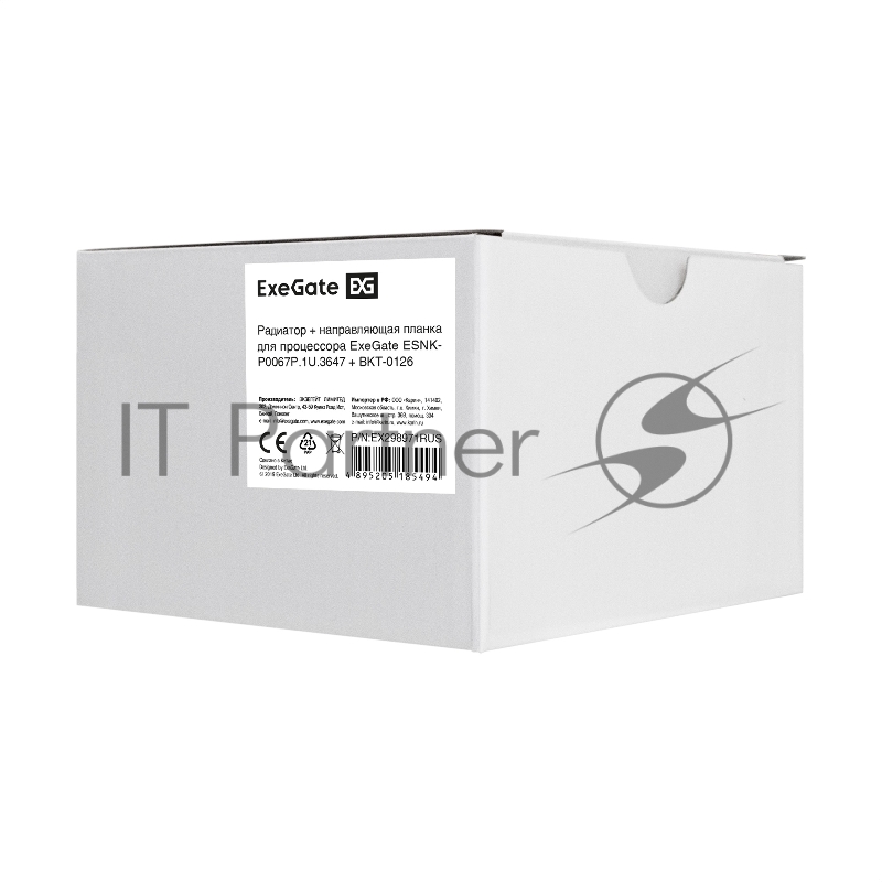 Радиатор+направляющая планка для процессора ExeGate ESNK-P0067P.1U.3647 + BKT-0126 (Al, 1U, 2 тепл. трубки, LGA3647, Square, TDP 165W, 230г, на винтах, с термопастой, в комплекте с направляющей планкой (back plate BKT-0126), RTL)