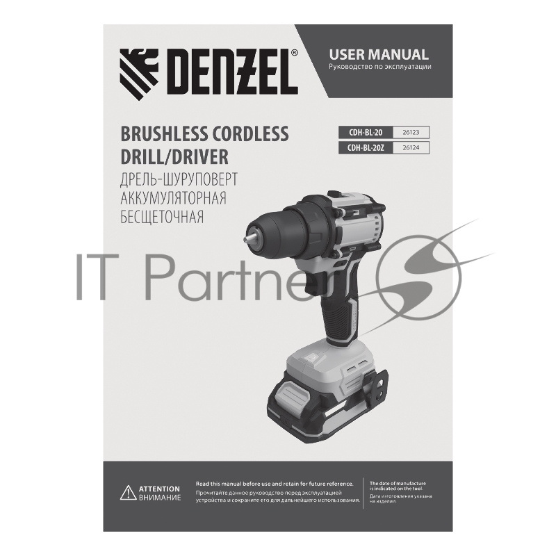 Дрель-шуруповерт аккумуляторная бесщет. CDH-BL-20, Li-Ion, 20 В// Denzel