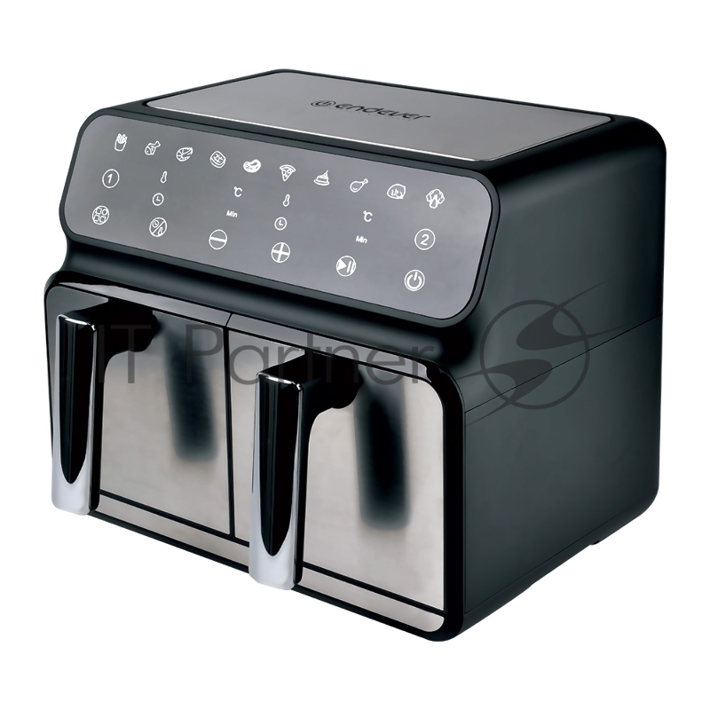 Аэрогриль Endever Skyline AF-128 с двумя чашами, черный/стальной, мощность 2850 Вт, объем по 4 л, 10 авторежимов, температура 60-200 С, 1 шт/уп.