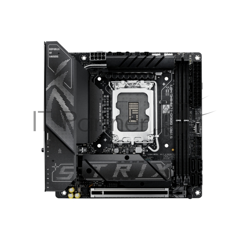 Материнская плата ASUS ROG STRIX B860-I GAMING WIFI, LGA1851, Intel B860, 2xDDR5, 4xSATA, 2xM.2, 1xPCIe 5.0 x16, 1xDP, 1xHDMI, 1xThunderbolt 4, 1x2.5Gb LAN, Wi-Fi 7, 2xUSB 2.0, 3xUSB 3.2 Gen 1, 1xUSB 3.2 Gen 2, 1xUSB 3.2 Gen 2x2, 1xUSB-C, 1xS/PDIF, 2