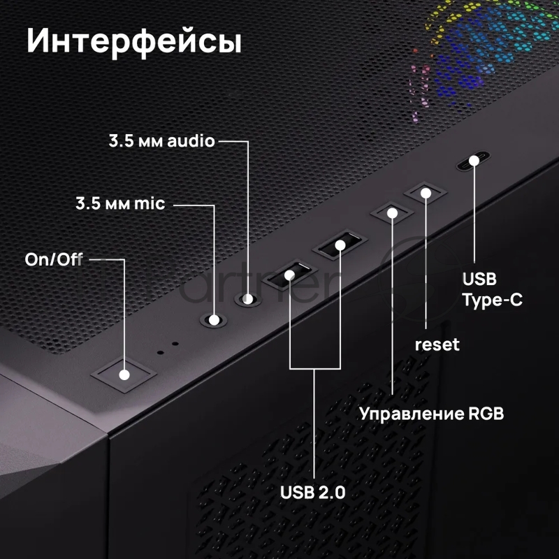 Компьютерный корпус ABR Quantum Black (1*USB Type-C, 2*USB 2.0, HD Audio, 4xRGB Fan, ATX, E-ATX)