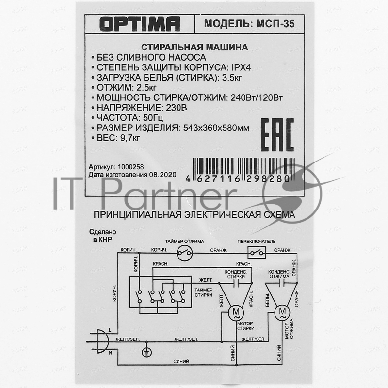 Купить стиральную машину OPTIMA МСП-35 в Коврове. Заказать на сайте. Забрать в "Ваш Компьютер" г.Ковров пр-т Ленина 20