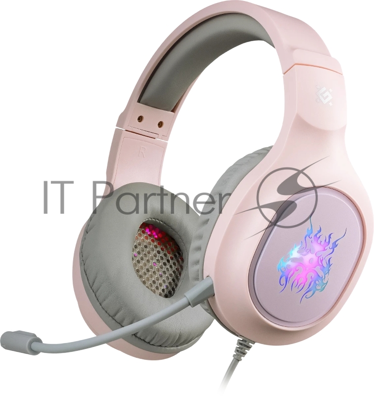 Гарнитура игровая DEFENDER (64481) Fury розовый, LED, провод 2 м