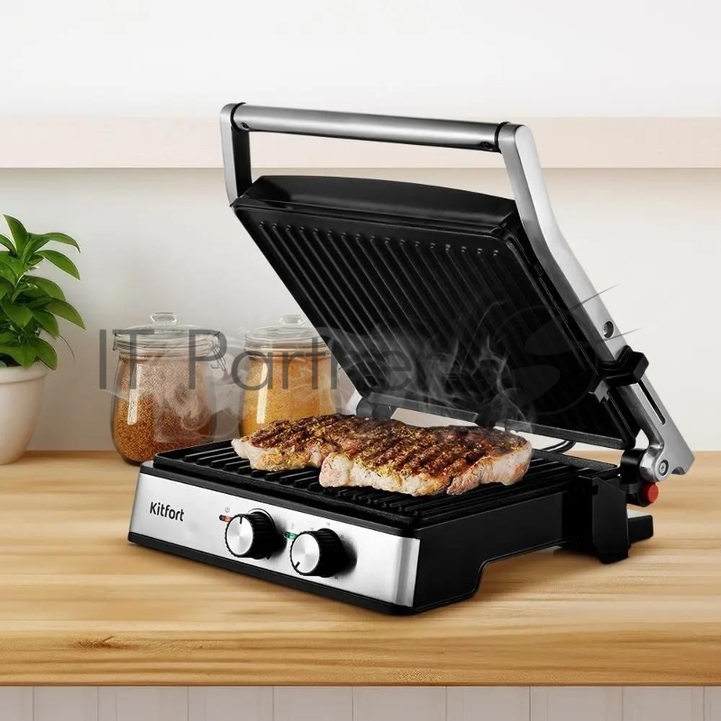 Электрогриль Kitfort КТ-3601 2000Вт серебристый/черный