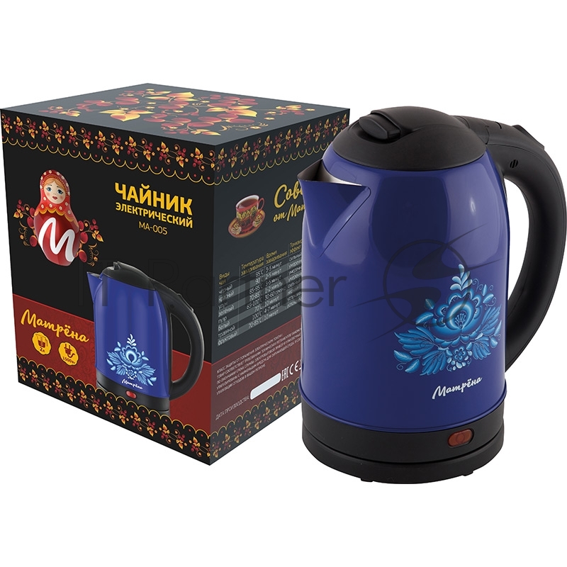 Чайник Матрена MA-005 электрический (2,0 л) стальной синий гжель