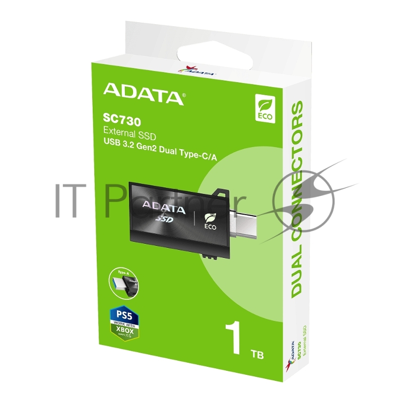 Внешний SSD ADATA External SSD SC730, 1000GB, Type-C, Type-A, USB 3.2 Gen2, R/W 600/600 MB/s, 36.8x23.8x9.7mm, Black (5 лет)