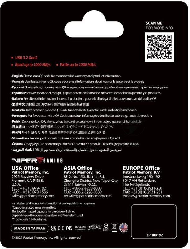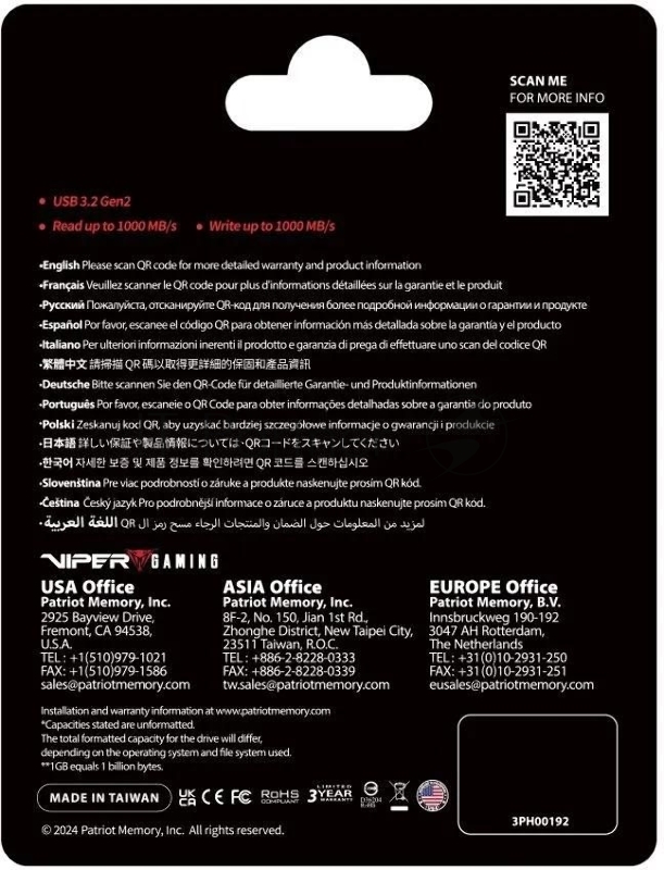 Накопитель SSD Patriot USB3.2 Gen2 512GB PVP30512G28UDG Viper PVP30 2.5 черный