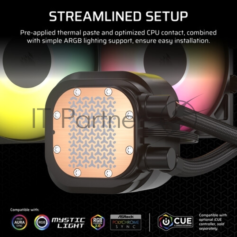 Система жидкостного охлаждения Corsair NAUTILUS 240 ARGB (240mm, Black, ARGB/ Fans: 2x120mm, 74.37CFM, 34dBA, 2100RPM/ S: 1851, 1700, AM5, AM4)