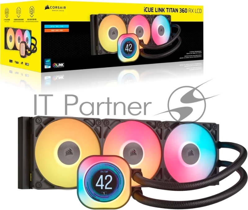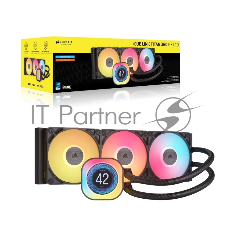 Система жидкостного охлаждения Corsair iCUE LINK TITAN 360 RX LCD (360mm, Black, RGB/ Fans: 3x120mm, 73.5CFM, 36dBA, 2100RPM/ S: 1851, 1700, AM5, AM4)