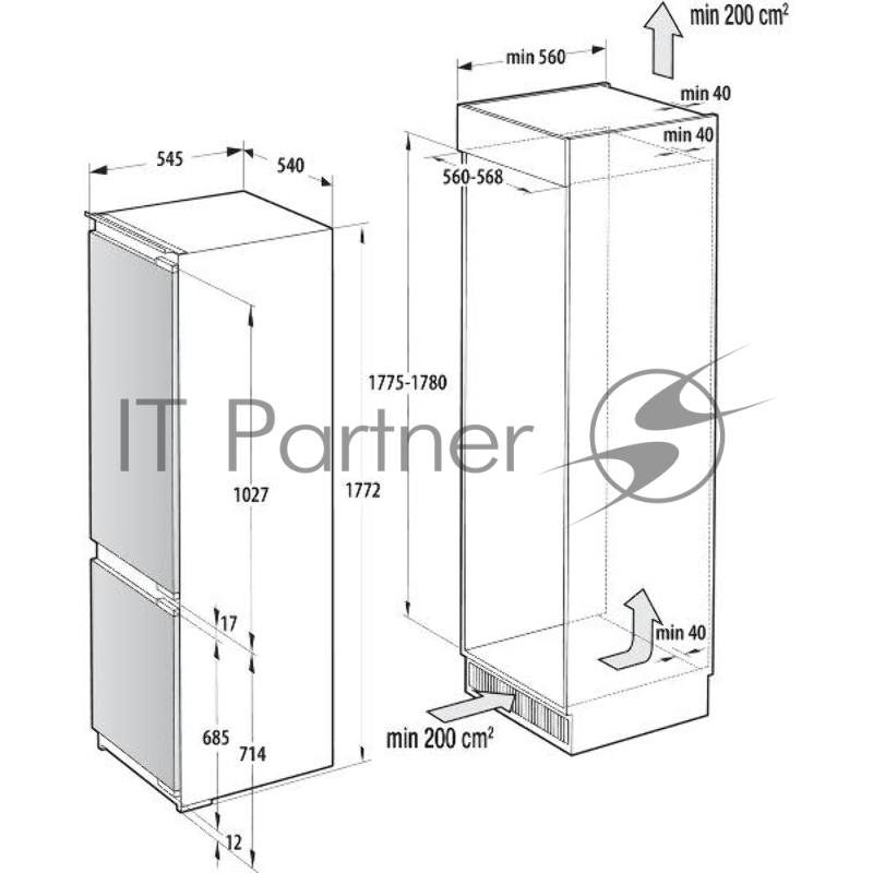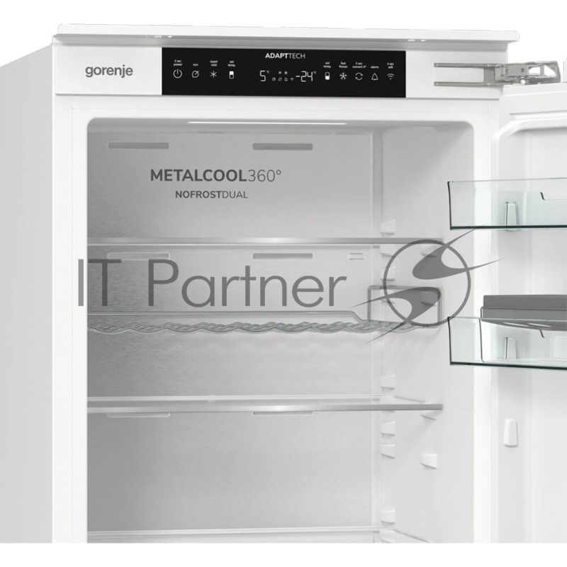Встраиваемый холодильник Gorenje NRKI517E82WF, полезный объем 244 л, электронное управление, цифровой дисплей, автоматическое размораживание No Frost, быстрое замораживание, интенсивное охлаждение, зона свежести с контролем влажности, инверторный ком