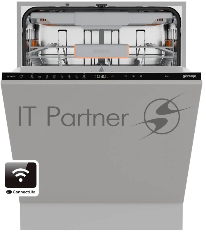 Посудомоечная машина встраиваемая Gorenje GV673B65 16 комплектов, 3 корзины, инверторный мотор, отсрочка старта, Wi-Fi управление, сенсорное управление, полный AquaStop, сенсор уровня воды, энергоэффективность А+++, уровень шума 42 дБ, цвет белый