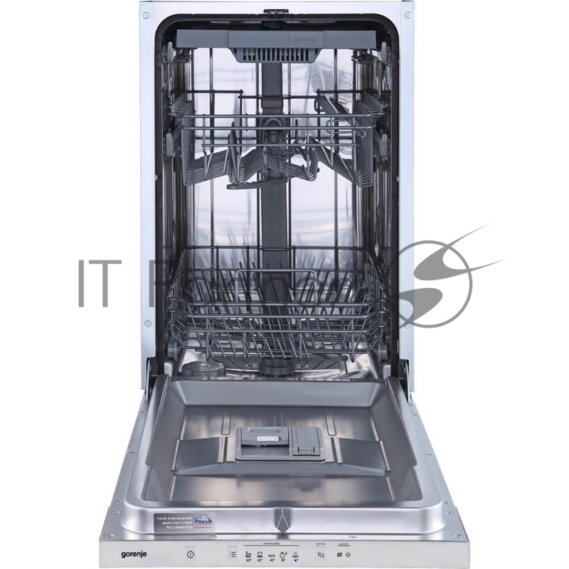 Посудомоечная машина встраиваемая Gorenje GV520D17S, загрузка 10 комплектов, стандартный мотор, регулировка верхней корзины по высоте, 3 корзины, кнопочное управление, звуковой сигнал завершения цикла, автооткрывание дверцы, половинная загрузка, полн