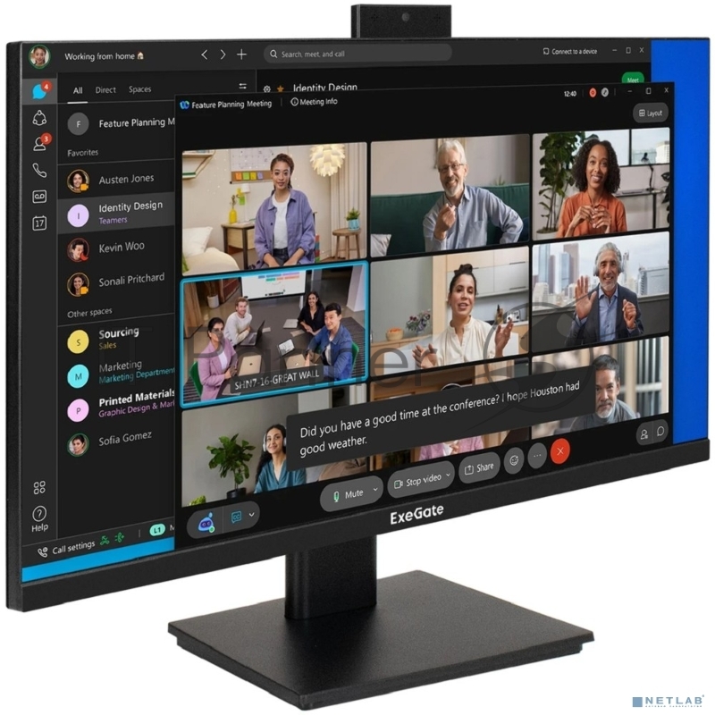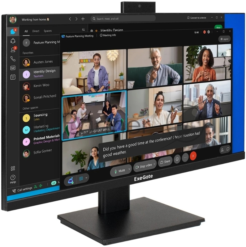 Монитор со встроенной веб-камерой 23.8 ExeGate SuperView EA2400 (IPS LED Grade A+, FHD, 1920x1080@75Гц, 16:9, 250cd/m2, 1000:1, 178°/178°, 5ms, D-Sub, HDMI, FHD веб-камера 2MP, микрофон, Flicker-free, Low Blue Light, кабель HDMI 1.5м, VESA 100x100, р