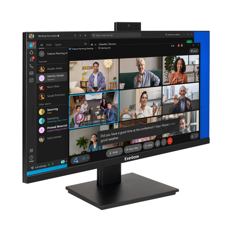 Монитор со встроенной веб-камерой и аудио выходом 23.8 ExeGate SuperView EA2400A (IPS LED Grade A+, FHD, 1920x1080@75Гц, 16:9, 250cd/m2, 1000:1, 178°/178°, 5ms, D-Sub, HDMI, audio-out, FHD веб-камера 2MP, микрофон, Flicker-free, Low Blue Light, кабел