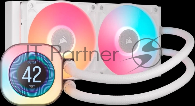 Система жидкостного охлаждения Water Cooling System Corsair iCUE LINK TITAN 240 RX LCD (240mm, White, RGB/ Fans: 2x120mm, 73.5CFM, 36dBA, 2100RPM/ S: 1851, 1700, AM5, AM4)