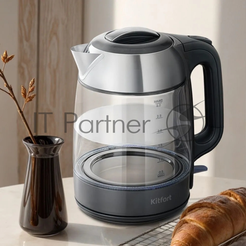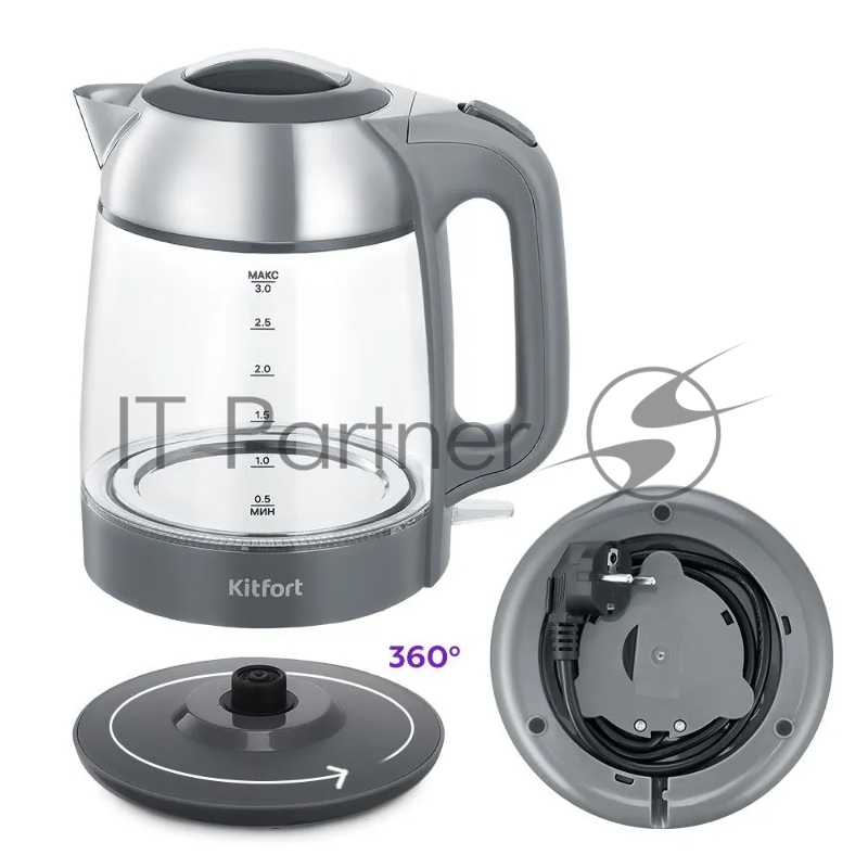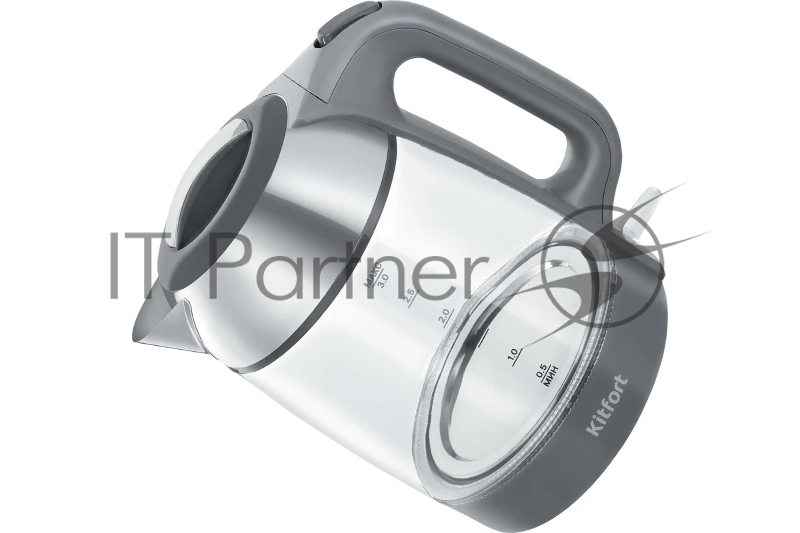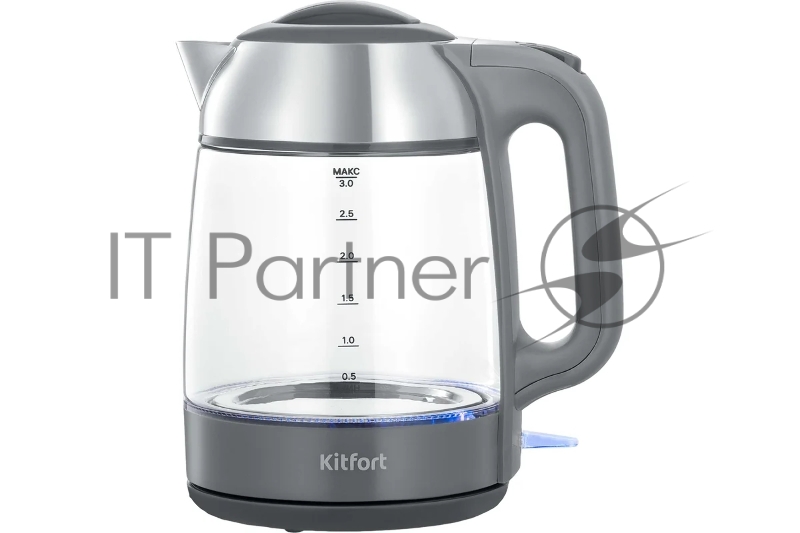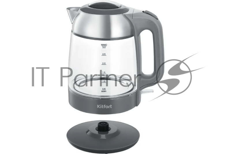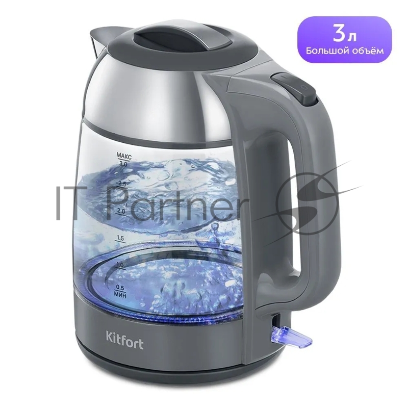 Чайник электрический Kitfort КТ-6762 3л. 2000Вт серый/серебристый корпус: стекло/металл/пластик