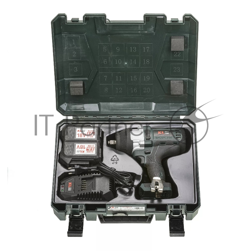 Профессиональный бесщеточный гайковерт аккумуляторный KLPRO KLSS18BHX-50 (18В, Li-ion-2шт, 5.0Ач, 800Нм, 2 скорости, подсветка,З/У,в кейсе)