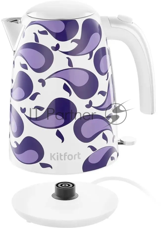 Чайник электрический Kitfort КТ-6768 1.7л. 2200Вт белый/фиолетовый корпус: металл/пластик