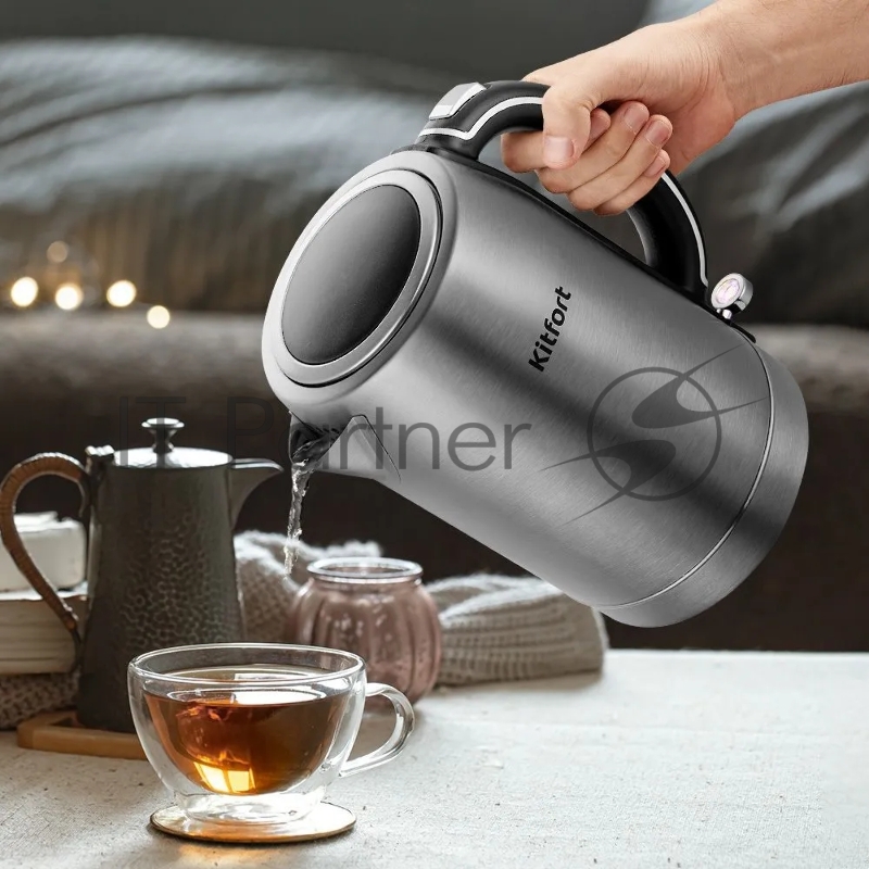 Чайник электрический Kitfort КТ-6175 1.7л. 2200Вт серебристый/черный корпус: металл/пластик