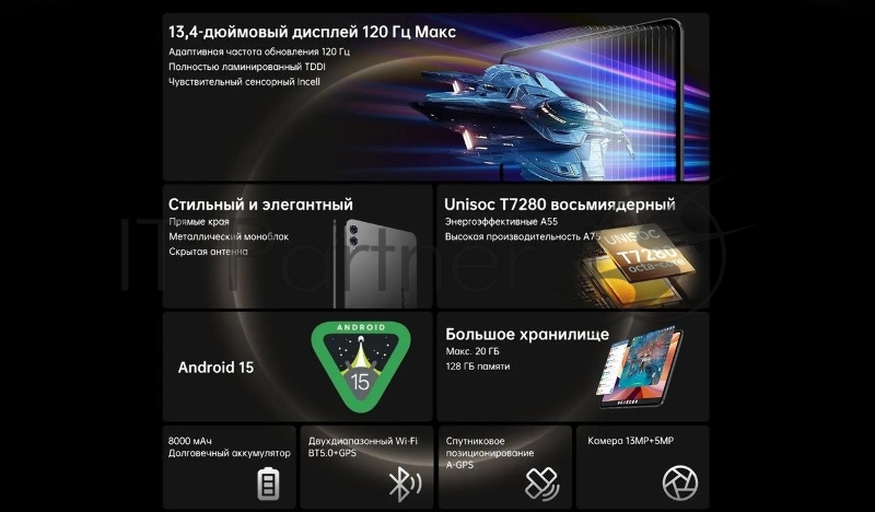 Планшет Teclast T65Max Premium set 2025 G99 (2.0) 8C RAM8Gb ROM256Gb 13 IPS 1920x1200 4G Android 15 черный 13Mpix 8Mpix BT WiFi microSD 1Tb 10000mAh 32hr