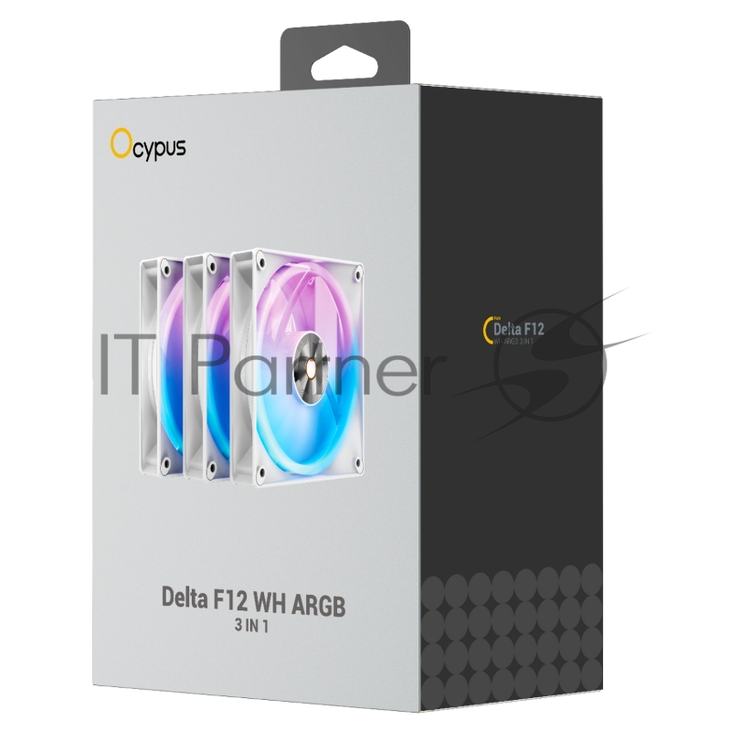 Вентилятор для корпуса Ocypus Delta F12 WH 3 IN 1, 120x120x25mm, 4-PIN PWM, 500-2000 RPM, 29 DBA MAX, HYDRO BEARING