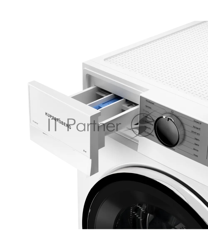 Стиральная машина KUPPERSBERG WM 480 W, отдельностоящая, 8 кг, 15 программ, 1400 об/мин, пар, дозагрузка белья, отложенный старт, предварительная стирка, LED дисплей, энергоэффективность А+++, цвет белый