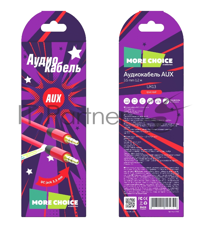 Кабель MORE CHOICE (4627151195742) 3.5mm 1.2м UK13 Red