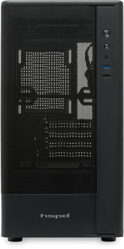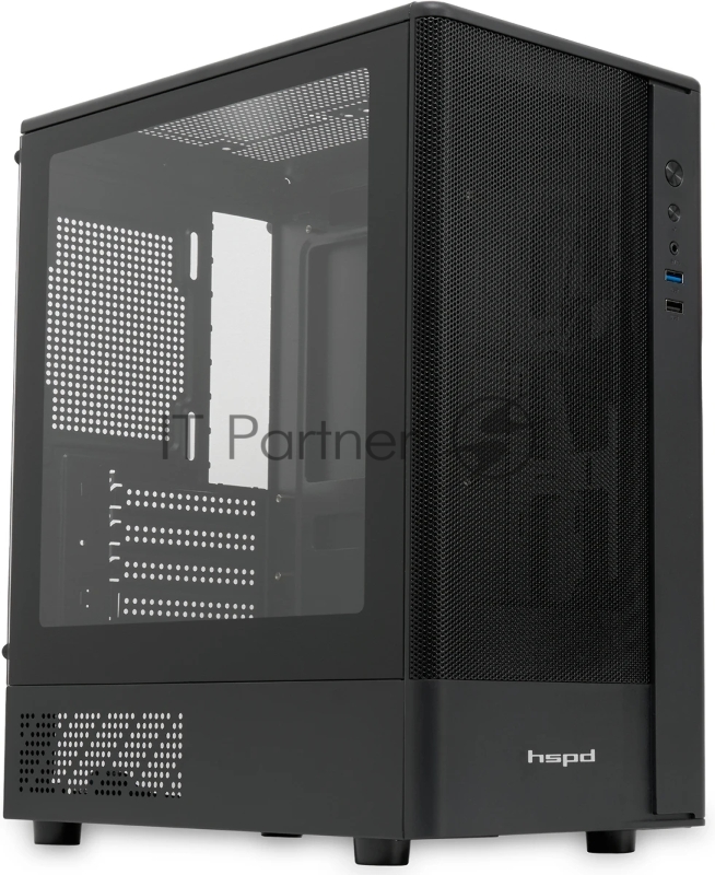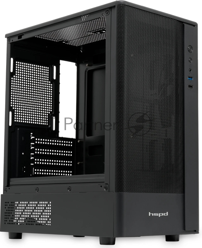 Корпус без блока питания/ Case HSPD M332, Mesh Mini-tower, Black, TG, 0.4 SPCC, no fans, mATX, mITX, 160/285/170mm, 1x2.5, 1x3.5, 4xPCI, 1xUSB-A 3.0, 1xUSB-A 1.0, 387x197x325mm