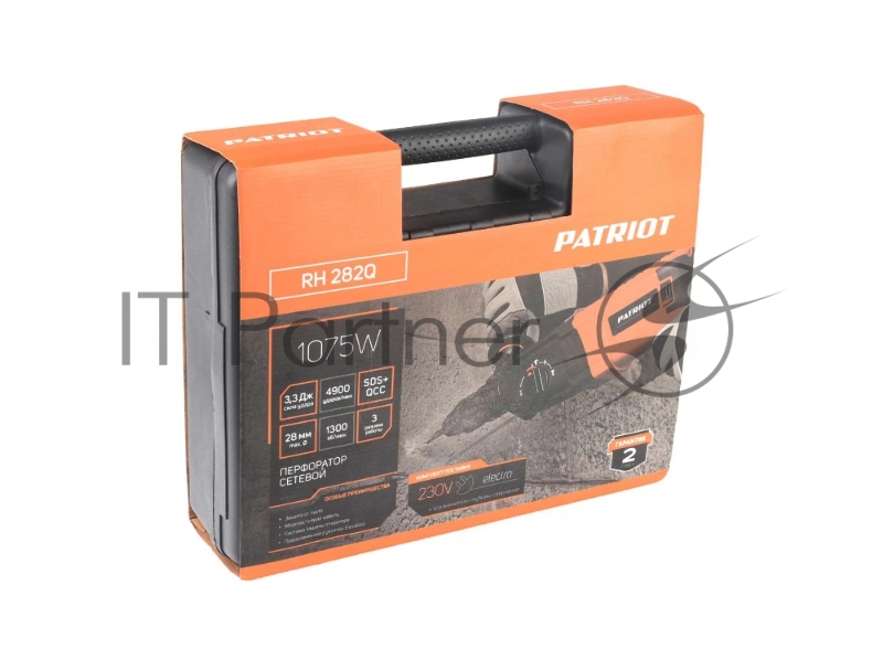 Перфоратор PATRIOT RH 282Q, 1075Вт, 4900уд/мин, 1300об/мин, 3,3Дж