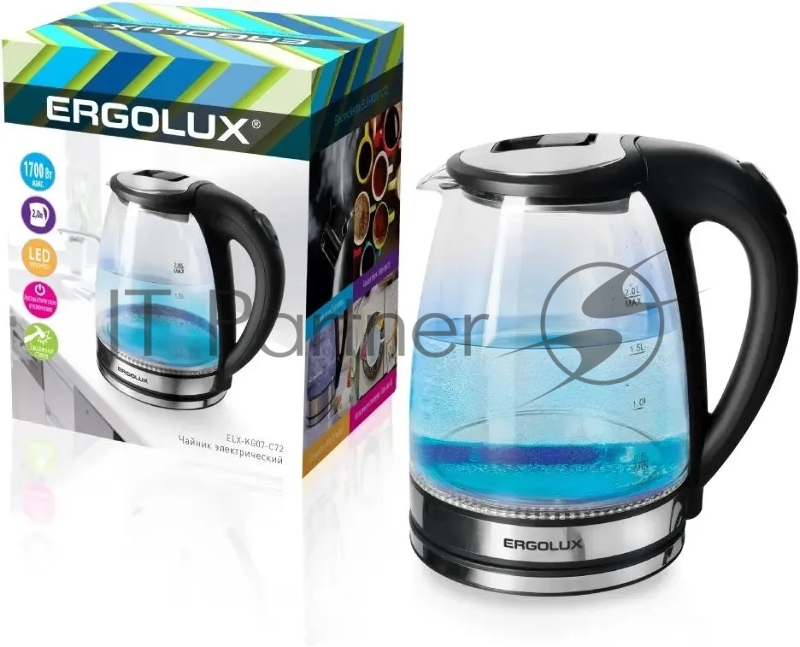 Чайник ERGOLUX ELX-KG07-C72 черный/нерж. 2л 15074