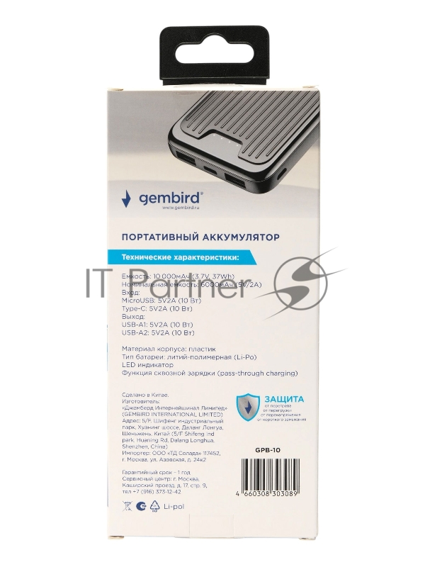 Купить Power bank Gembird GPB-10 в Коврове. Заказать на сайте. Забрать в "Ваш Компьютер" г.Ковров пр-т Ленина 20
