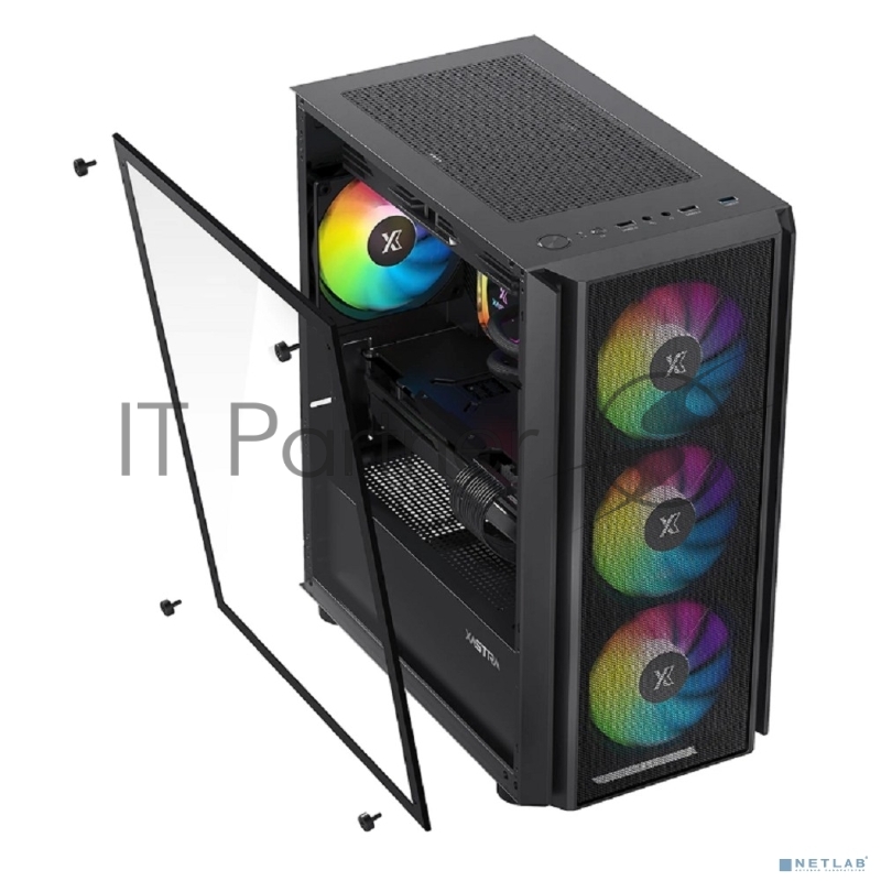 XASTRA Корпус A402M 4FRGB Black mATX/Mesh/full-size TG/4x120mm FRGB fans/ A402M-4FC12F-BK