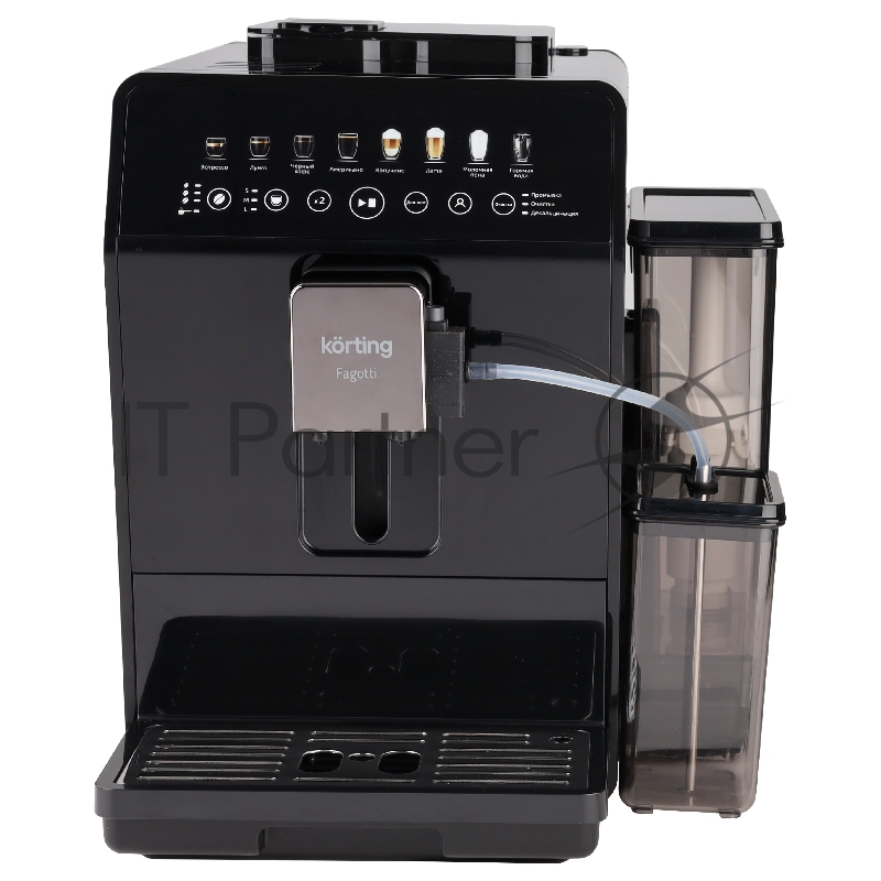Кофемашина KORTING KACM 2026 N Fagotti, автоматическая, сенсорное управление, сенсорный дисплей, давление 19 бар, капучинатор, емкость для молока (400 мл), кофемолка (150 г), 6 уровней помола, цвет черный