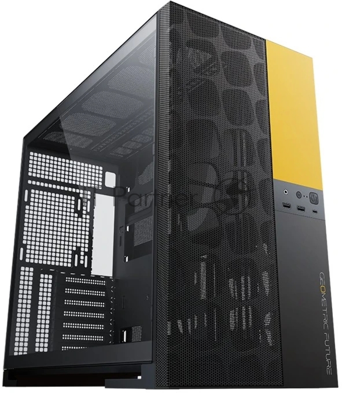 Корпус ПК без блока питания/ Case Geometric Future Model 5 Vent, Midi-Tower, TG, no fans, 2xUSB-A 3.0, 1xUSB 3.2 Type-C, E-ATX, ATX, mATX, mITX Black/Yellow