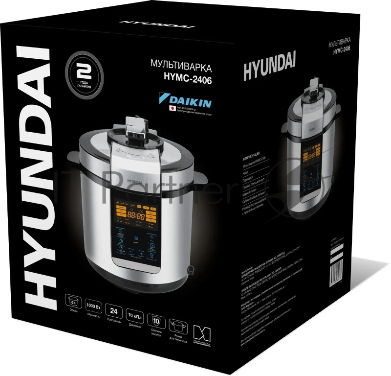 Мультиварка-скороварка Hyundai HYMC-2406 6л 1000Вт серебристый/черный