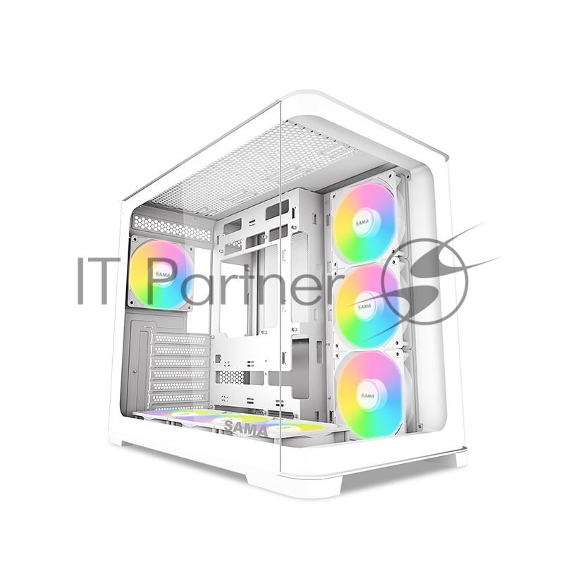 Корпус ПК без блока питания SAMA V60 White, Midi-Tower, TG, 7x120mm ARGb, 2xUSB 3.0 + 1xUSB 3.1 Type-C, ATX, mATX, mITX White