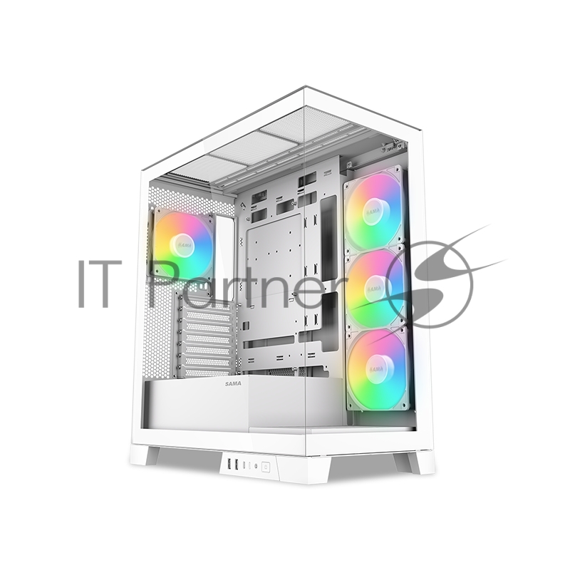 Корпус ПК без блока питания SAMA V50 White, Midi-Tower, TG, 4x120mm ARGb, 2xUSB 3.0 + 1xUSB 3.1 Type-C, ATX, mATX, mITX White