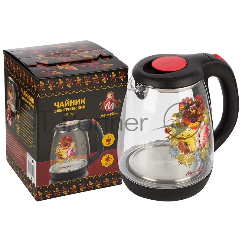 Чайник электрический Матрена MA-008 (1,8 л) стекло черный, хохлома