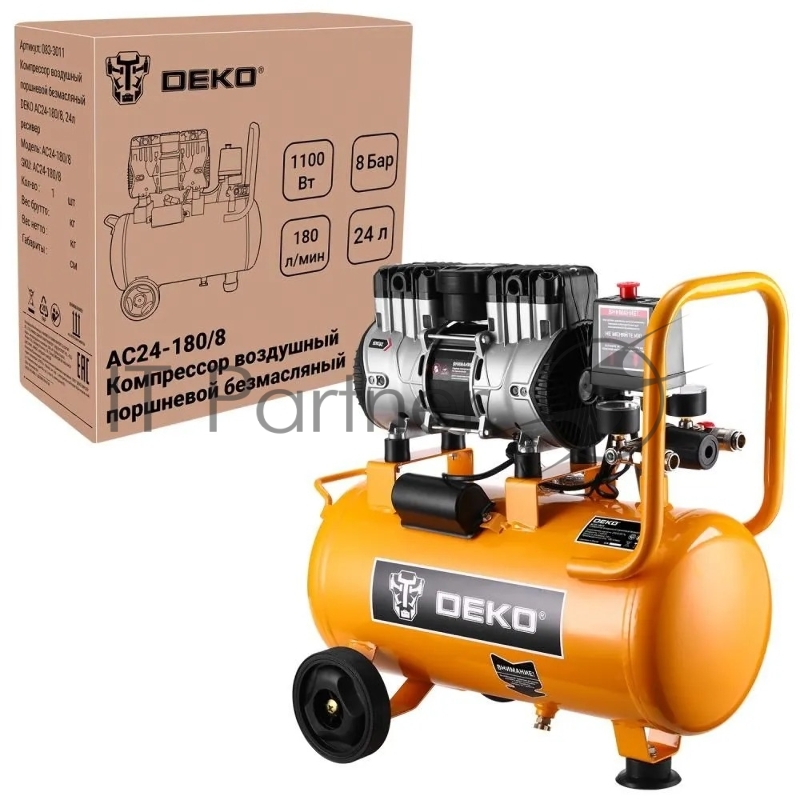 Компрессор воздушный поршневой безмасляный DEKO AC24-180/8, 24л ресивер