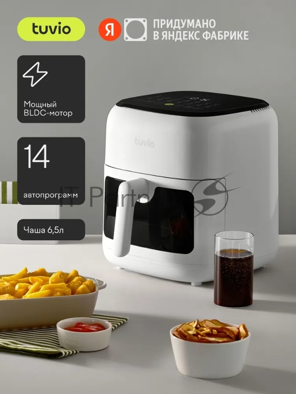 Аэрогриль Tuvio TAF01, 6,5 л с 14 автопрограммами, 2 уровнями и таймером, белый