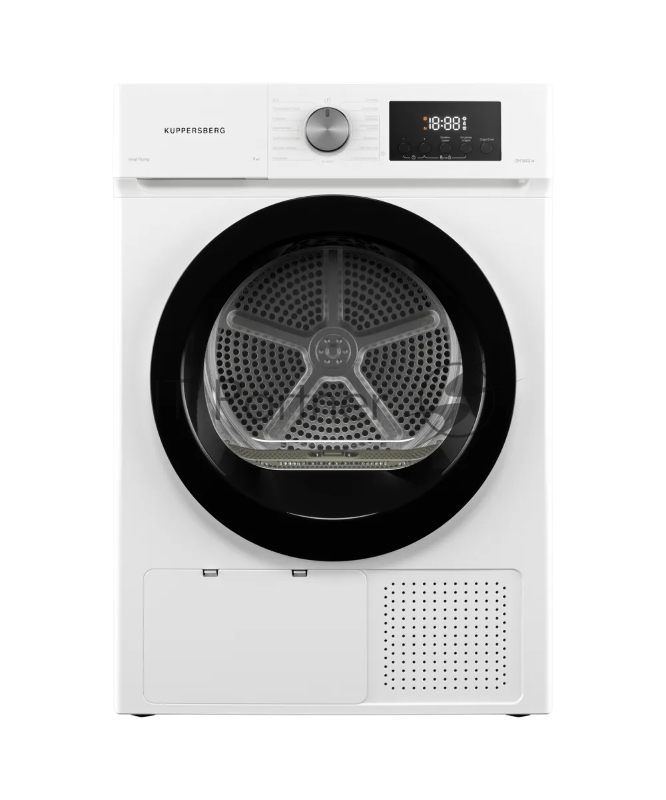 Сушильная машина Kuppersberg DM 593 W, High-Tech, загрузка 8 кг, 15 программ, тепловой насос, электронное кнопочное управление, корзина для сушки, блокировка от детей, энергоэффективность А++, цвет белый