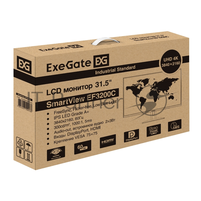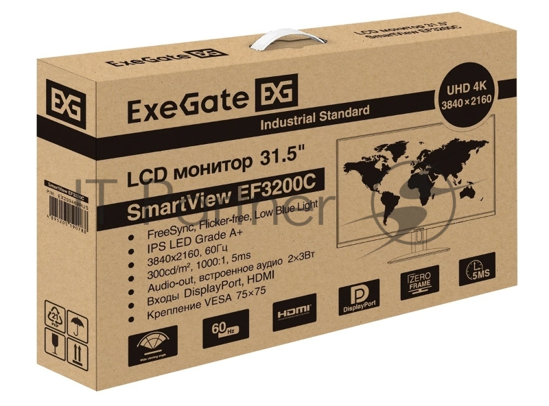 Монитор 31.5 UHD 4K ExeGate SmartView EF3200C (IPS LED Grade A+, 4K, 3840x2160@60Гц (UHD 4K), 16:9, 300cd/m2, 1000:1, 178°/178°, 5ms, 2xHDMI2.0, DisplayPort, USB, speakers, audio-out, Flicker-free, FreeSync, Low Blue Light, кабель HDMI 1.5м, VESA, ре