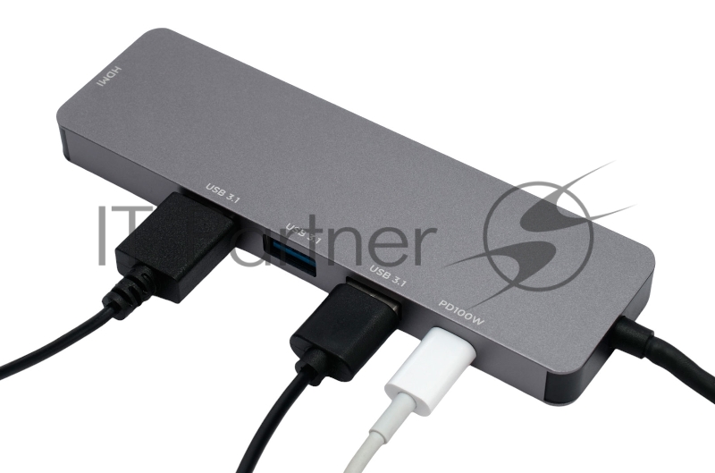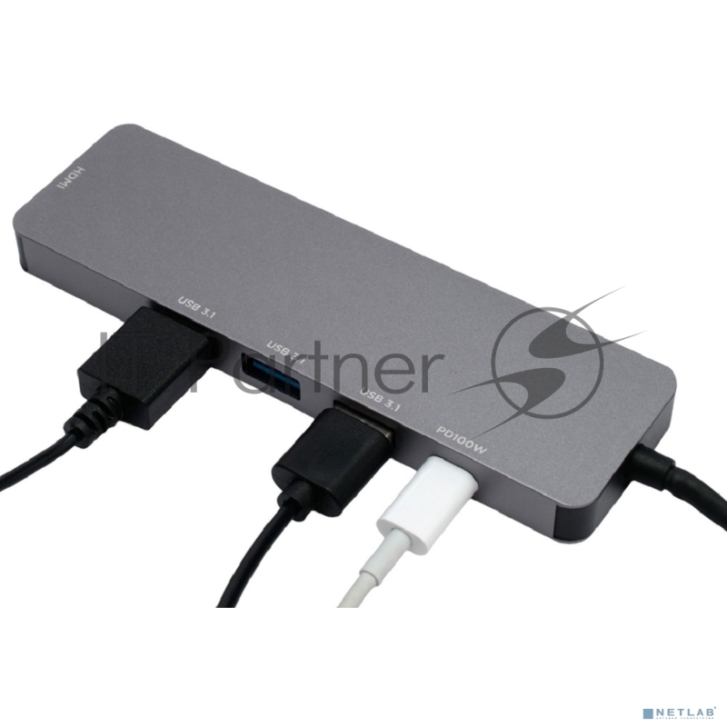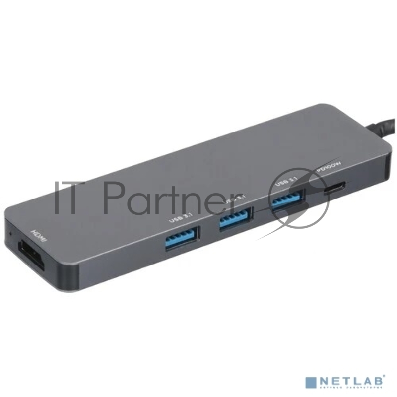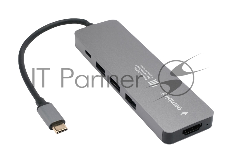 USB-концентратор Type-C Gembird UHB-D1, 5в1: 3хUSB3.1, Type-C PD100W, HDMI, кабель 17см, алюминий