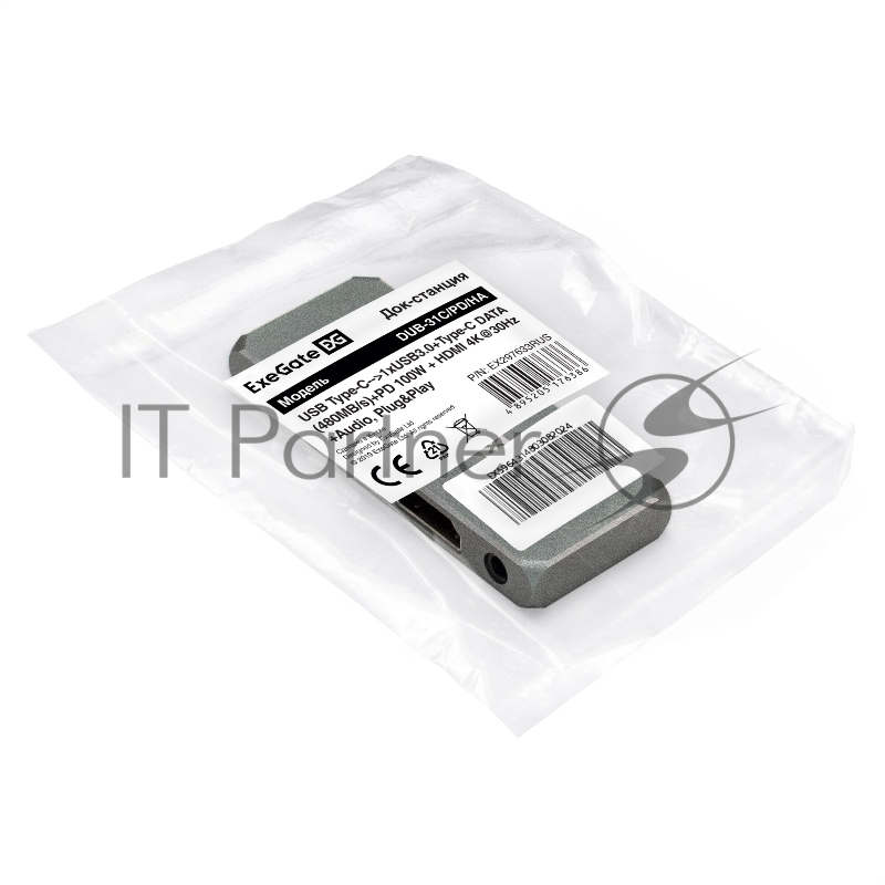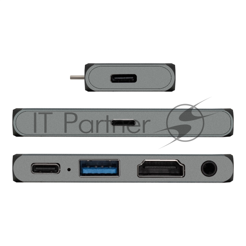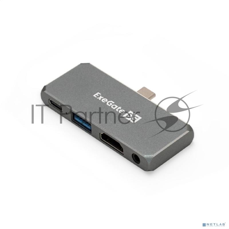USB-концентратор 5-в-1 ExeGate DUB-31C/PD/HA (кабель-адаптер USB Type-C --> 1xUSB3.0 + Type-C DATA (480Mb/s) + PD 100W + HDMI 4K@30Hz + Audio, Plug&Play, подходит для iPad Pro и мобильных телефонов, серый)