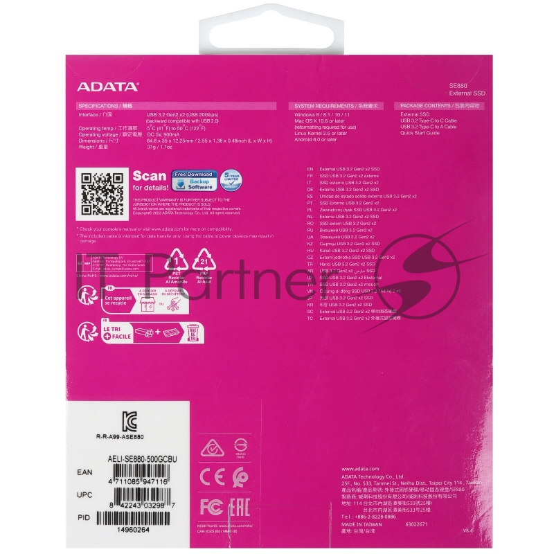 Внешние жесткие диски и SSD A-DATA AELI-SE880-500GCBU